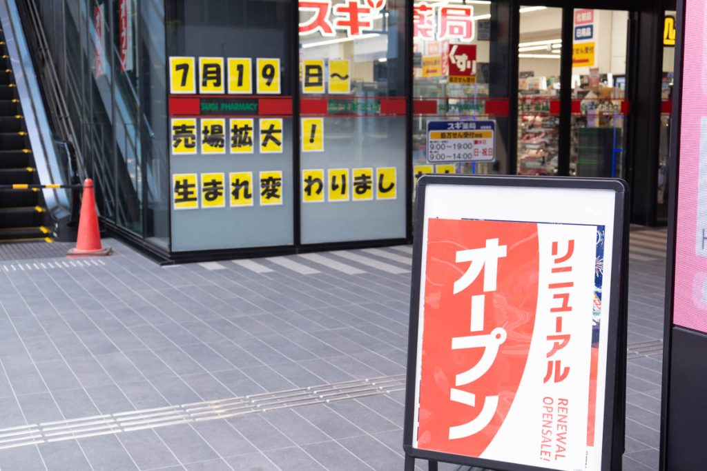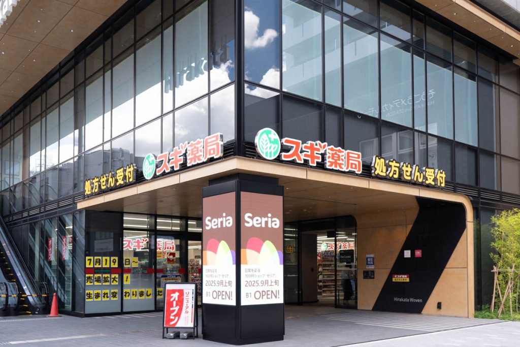 枚方市駅前の商業施設「Hirakata Woven」の『スギ薬局 枚方市駅北店』が売場を拡大してリニューアルオープンしています。
