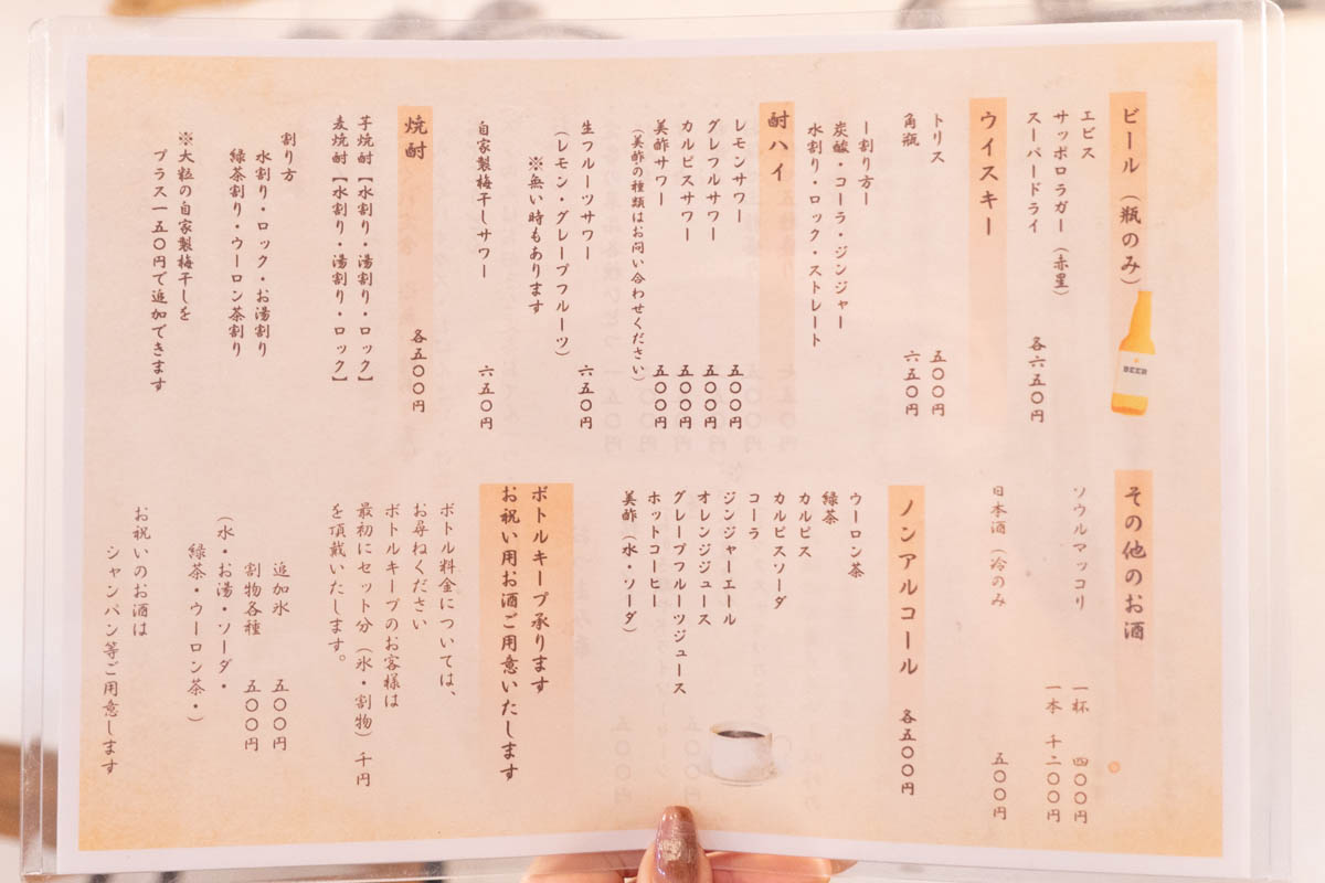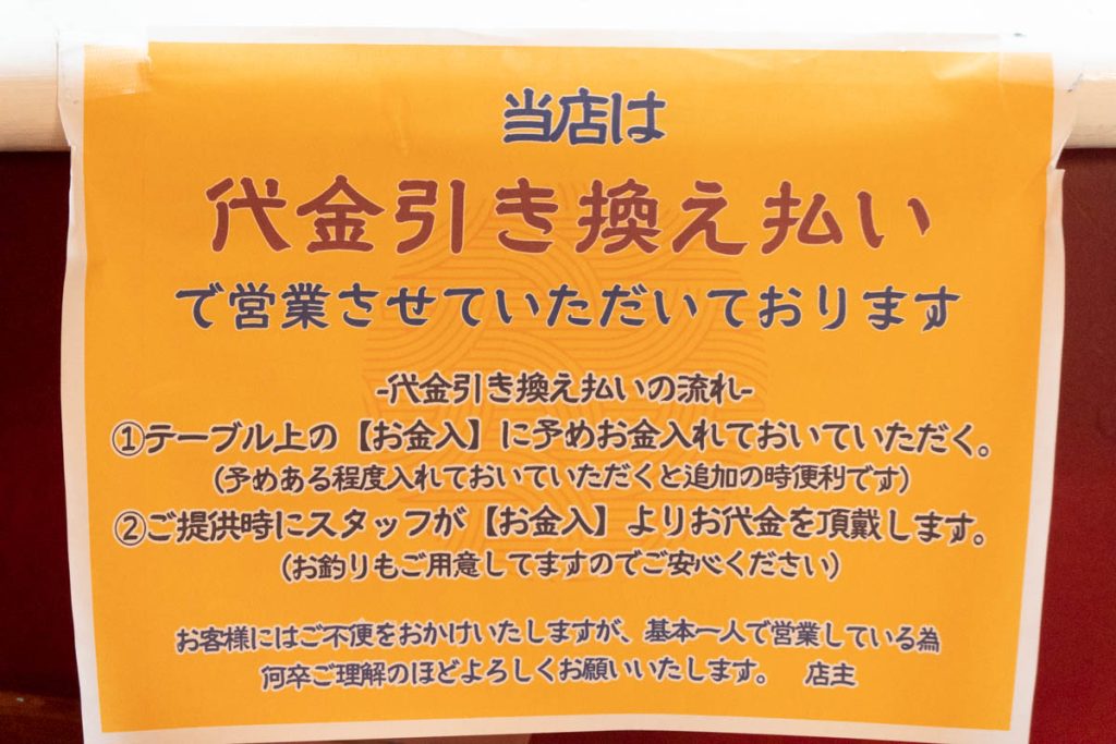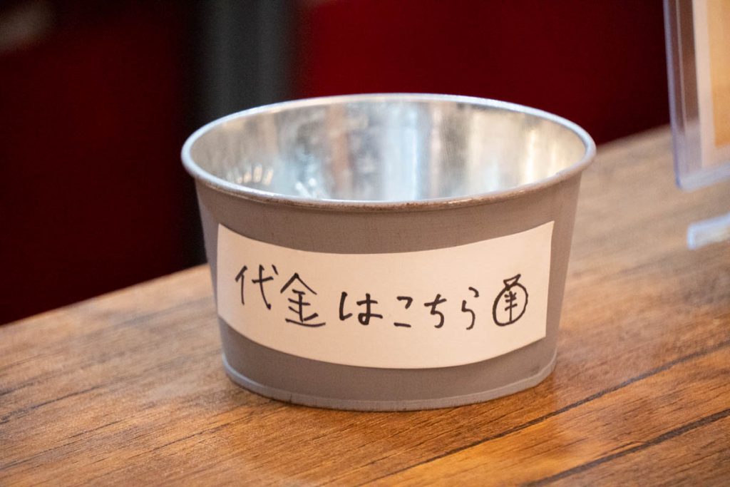 こちらのお店は「代金引き換え払い」だそうで、『予算2000円くらいでご飯、お酒が飲みたい』という気分のときは先程の入れ物にお金を入れておくというシステム。