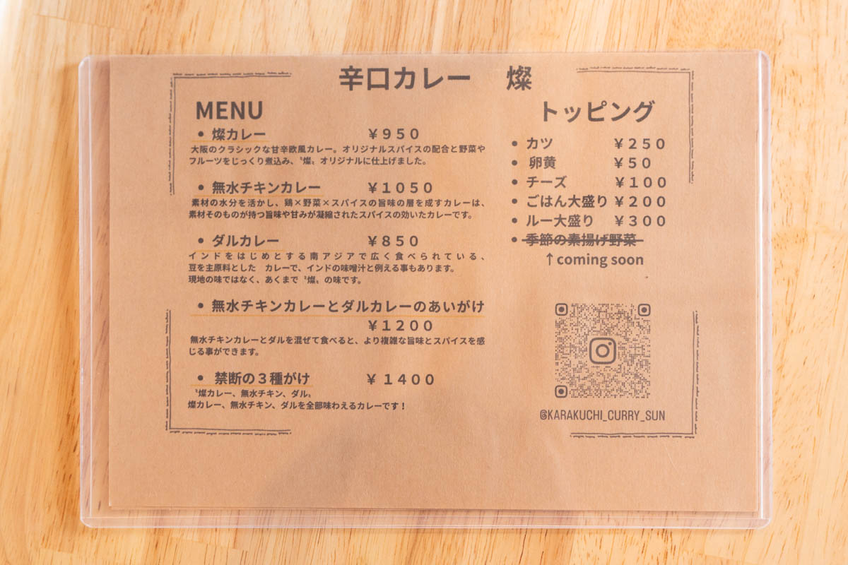「辛口カレー 燦」として新しくなったカレーも実際に食べてきましたので、また改めて記事にしたいと思います!めっちゃ美味しかった〜!
