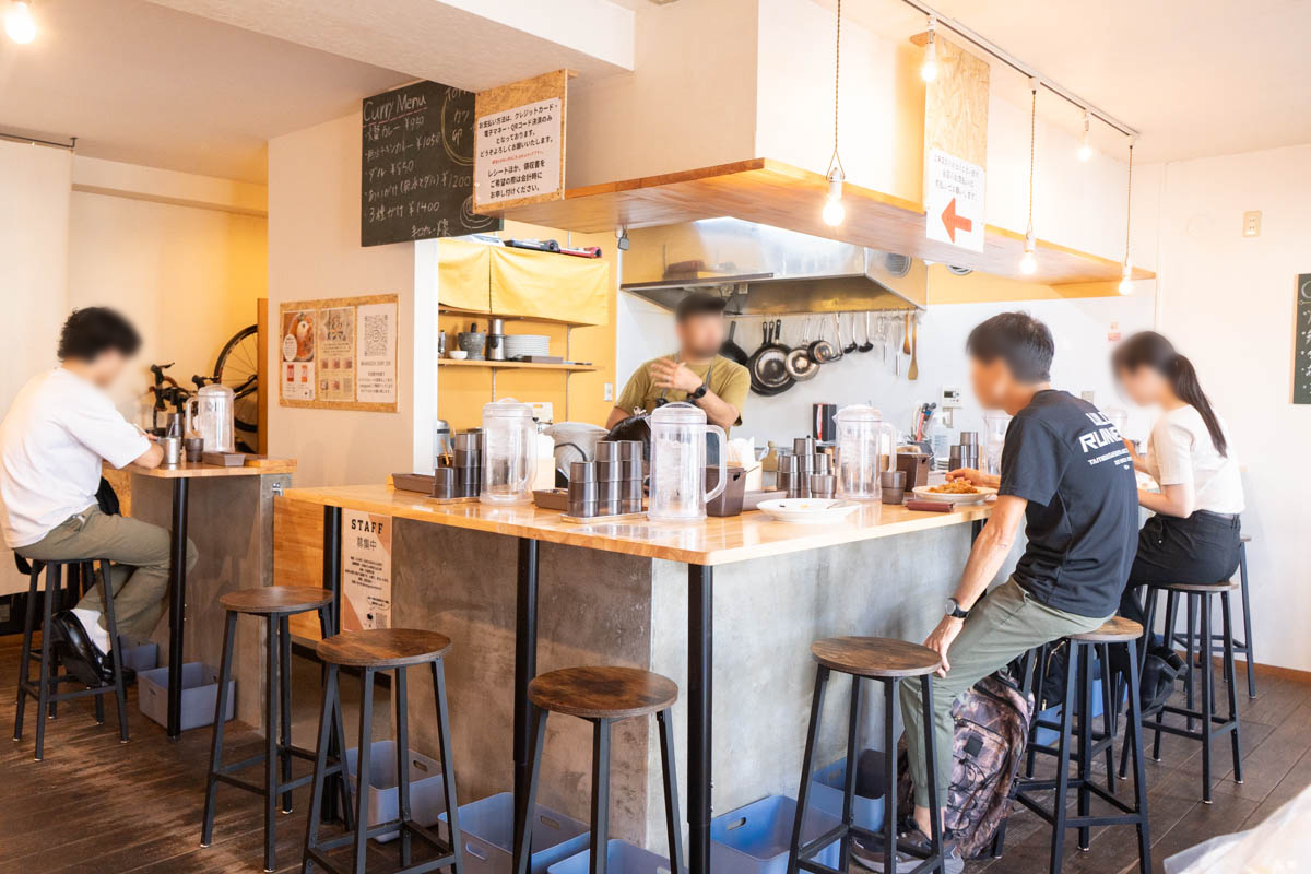 店内を見せてもらいました。「スパイス工房 燦」の時はテーブル席もあったのですがリニューアル後は、カウンター席のみになっていました。