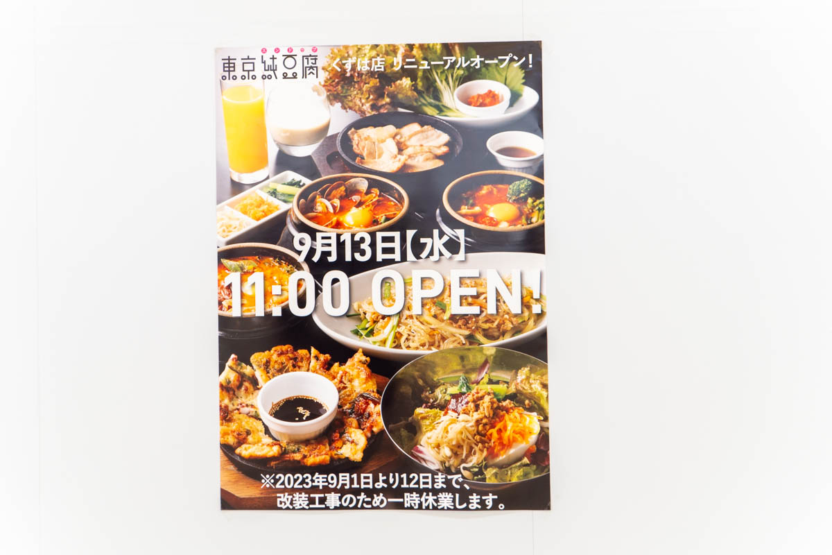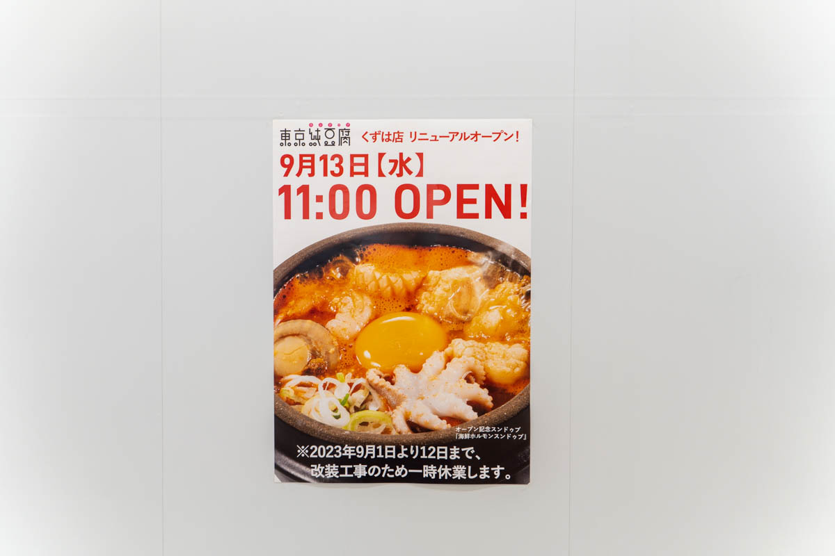 くずはモールの「東京純豆腐 くずはモール店」が移転するようです。