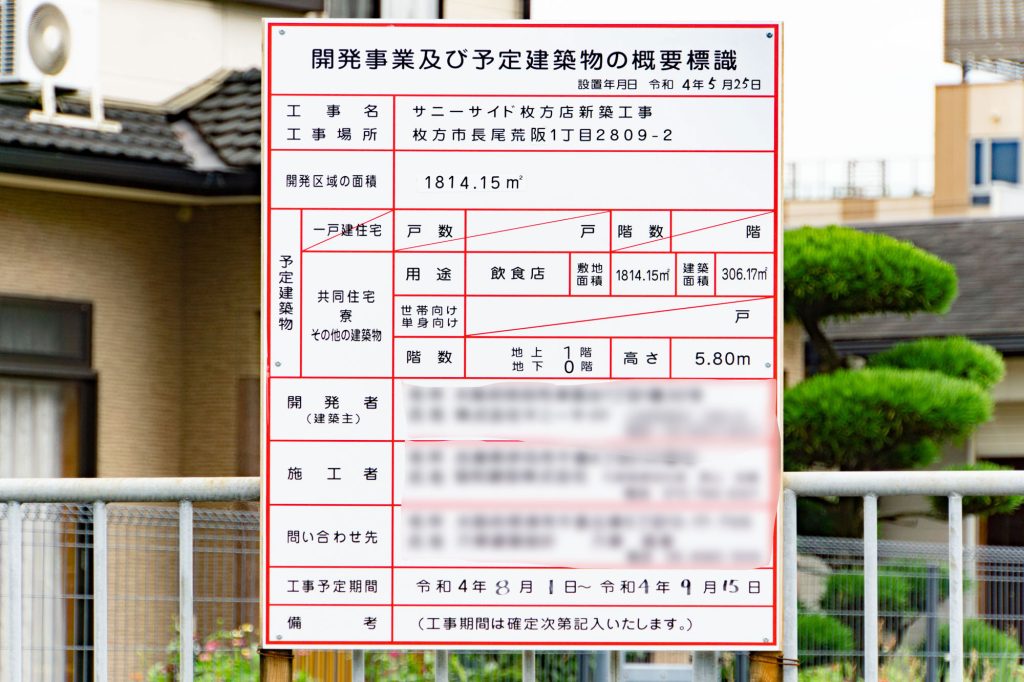 上記の工事名には「サニーサイド枚方店新築工事」と記載があります。