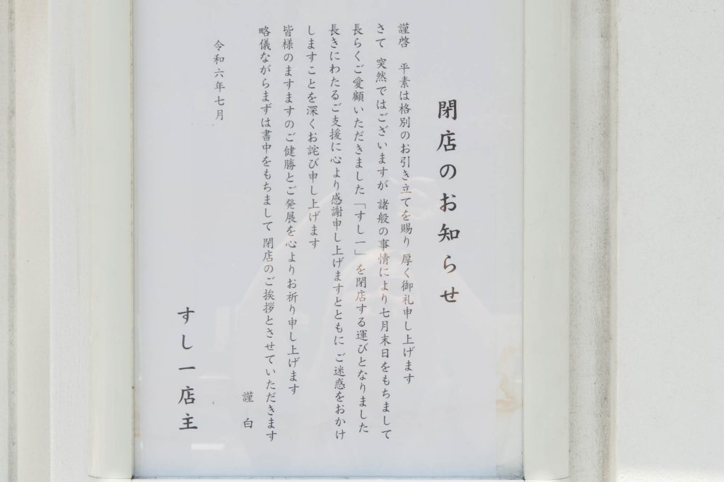 枚方市駅ちかくの「すし一」が閉店するようです。