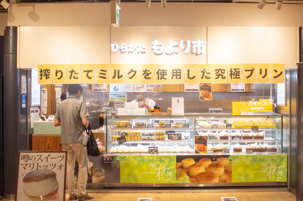 枚方市駅構内にプリン推しのお店「京・極」、樟葉駅に和菓子店「菓匠将満」という期間限定店ができています。