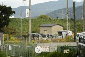 右がお店で真ん中がバス停「虚空蔵谷」。こっちに進んでいくと松井山手、どことなく枚方方面です。