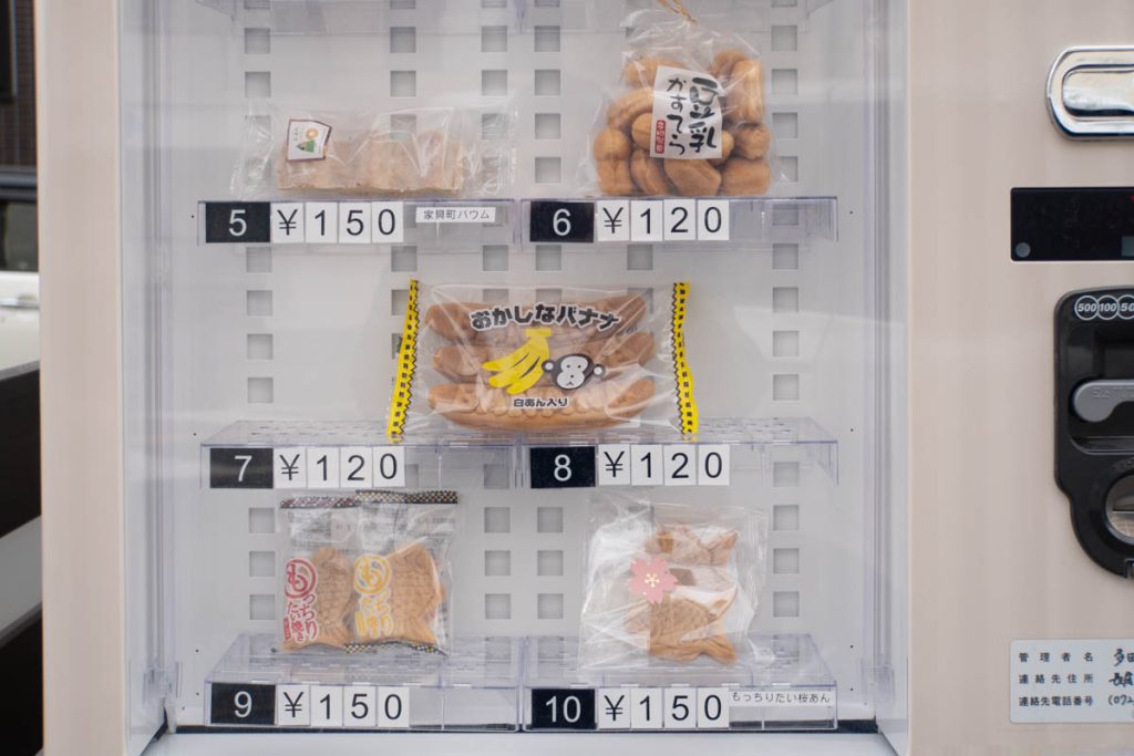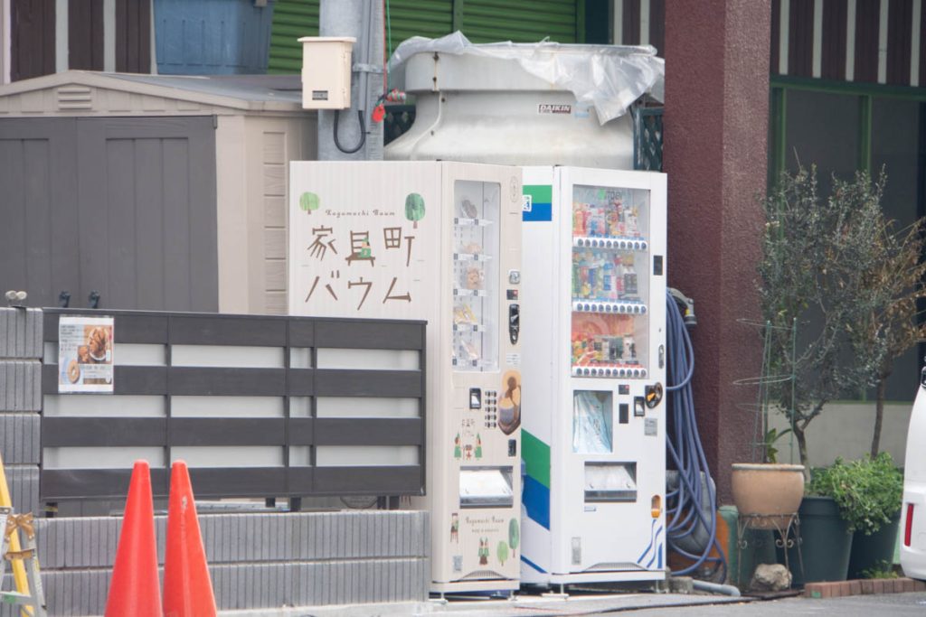 長尾家具町に「多田製菓」のお菓子の自動販売機が設置されています。