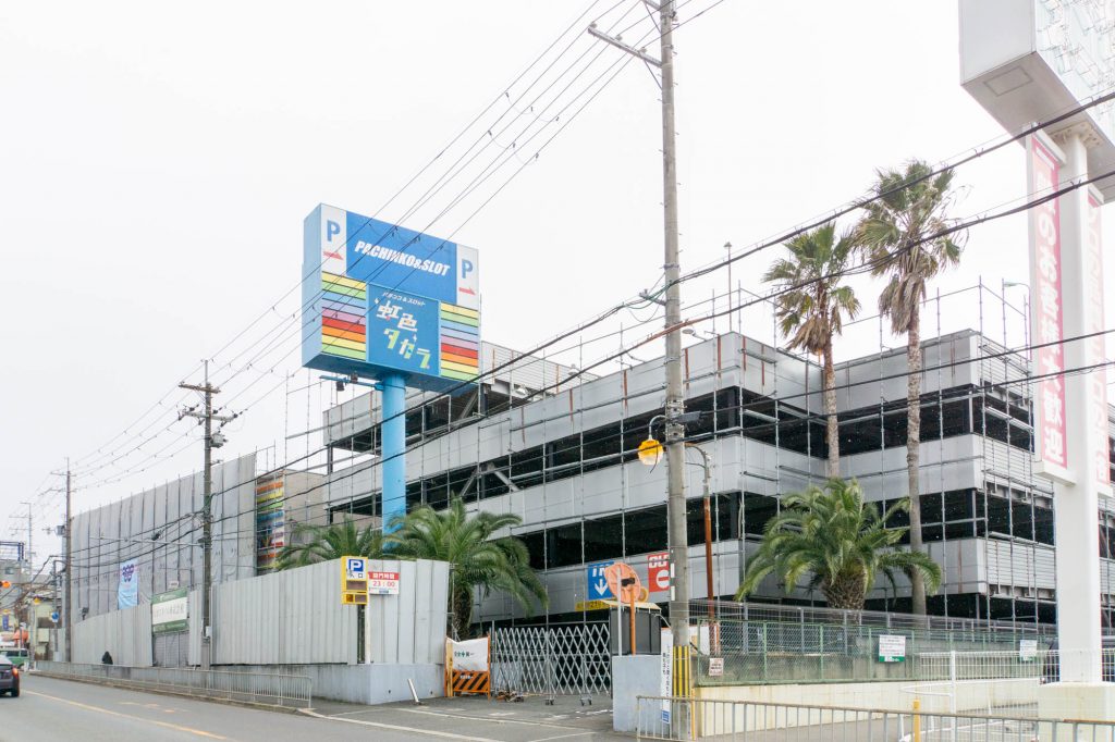 大峰のパチンコ店「虹色タカラ」があった建物が解体されています。
