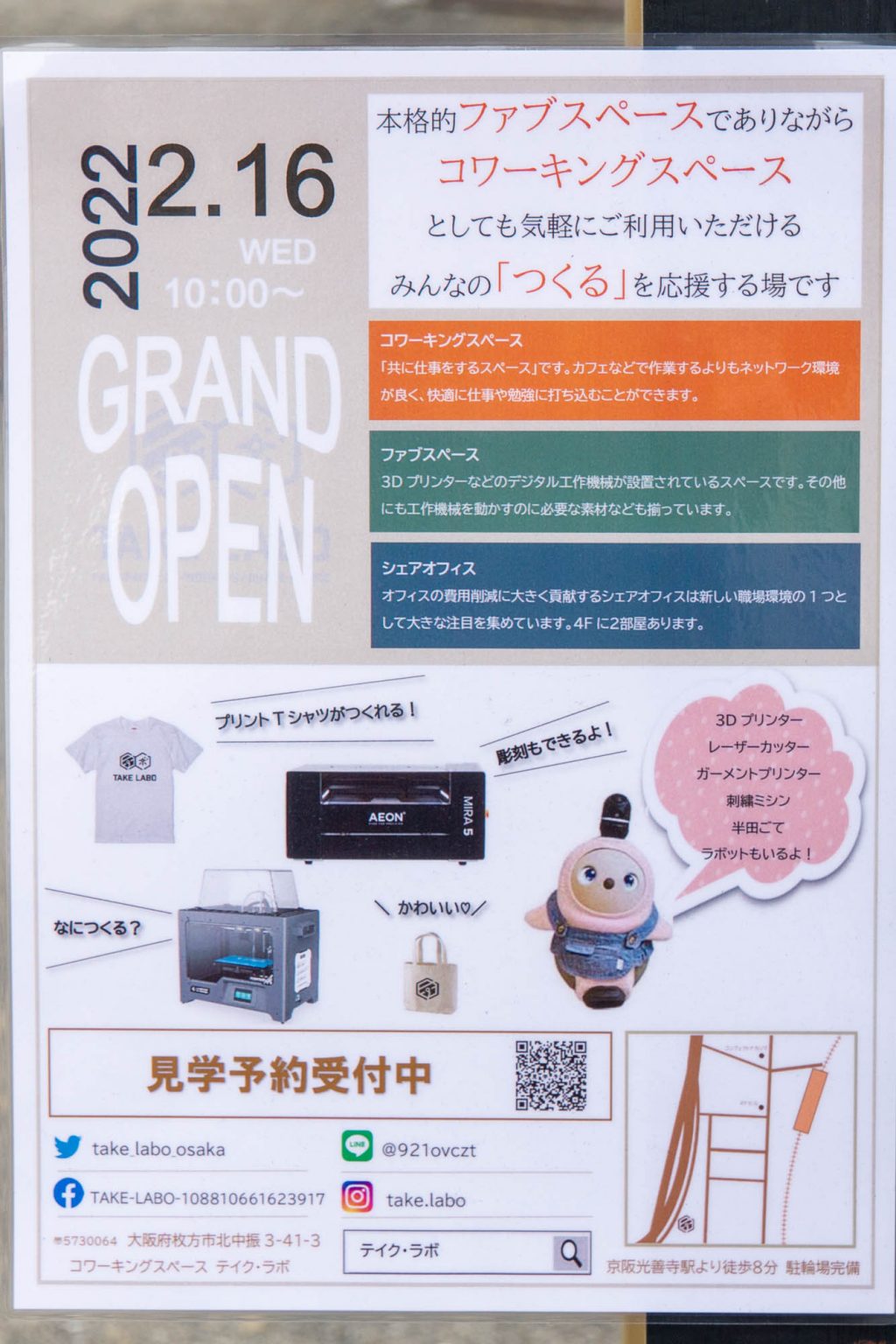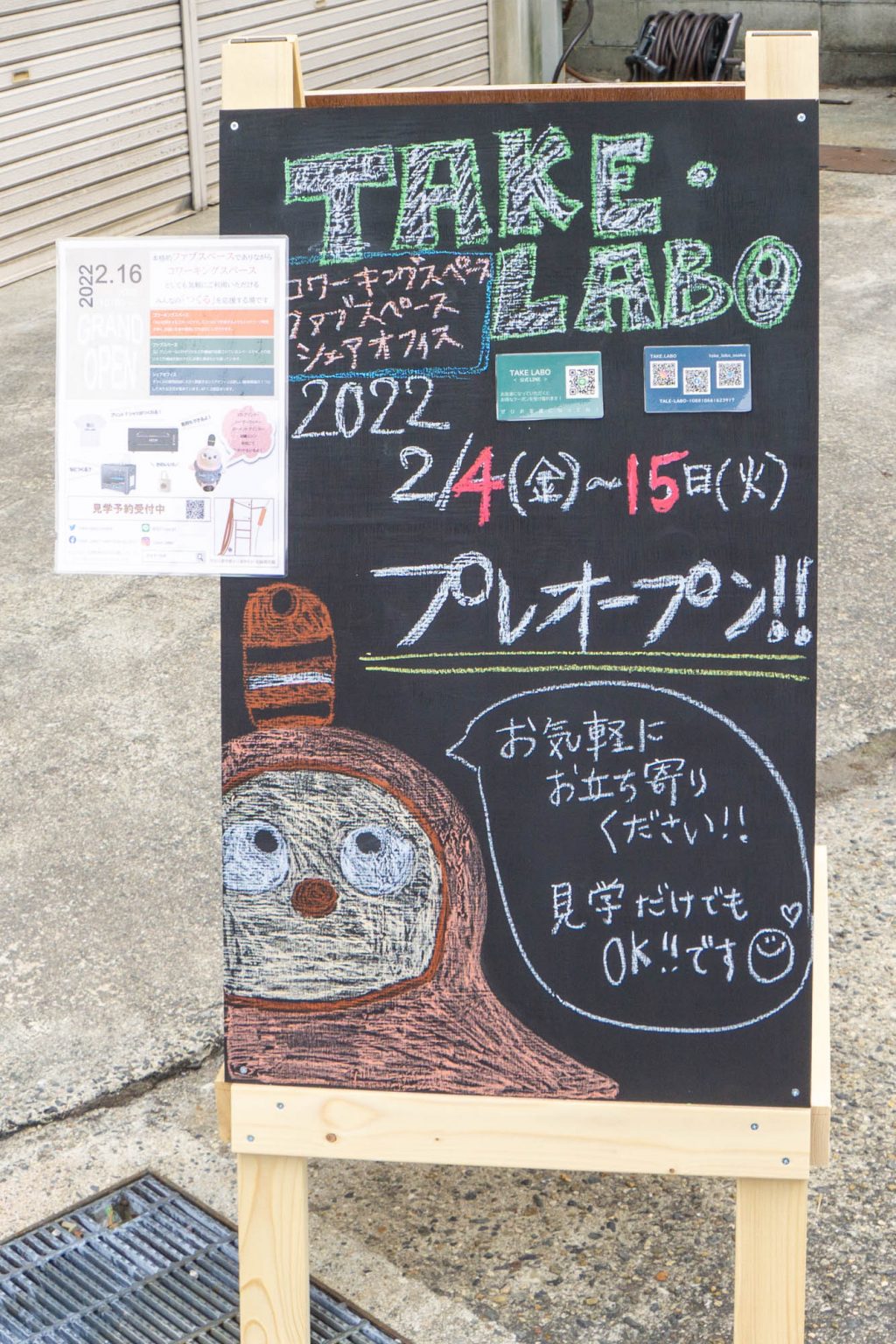 国道1号線沿い北中振に作っていたファブスペース&コワーキングスペース施設「テイク・ラボ」がプレオープンしています。