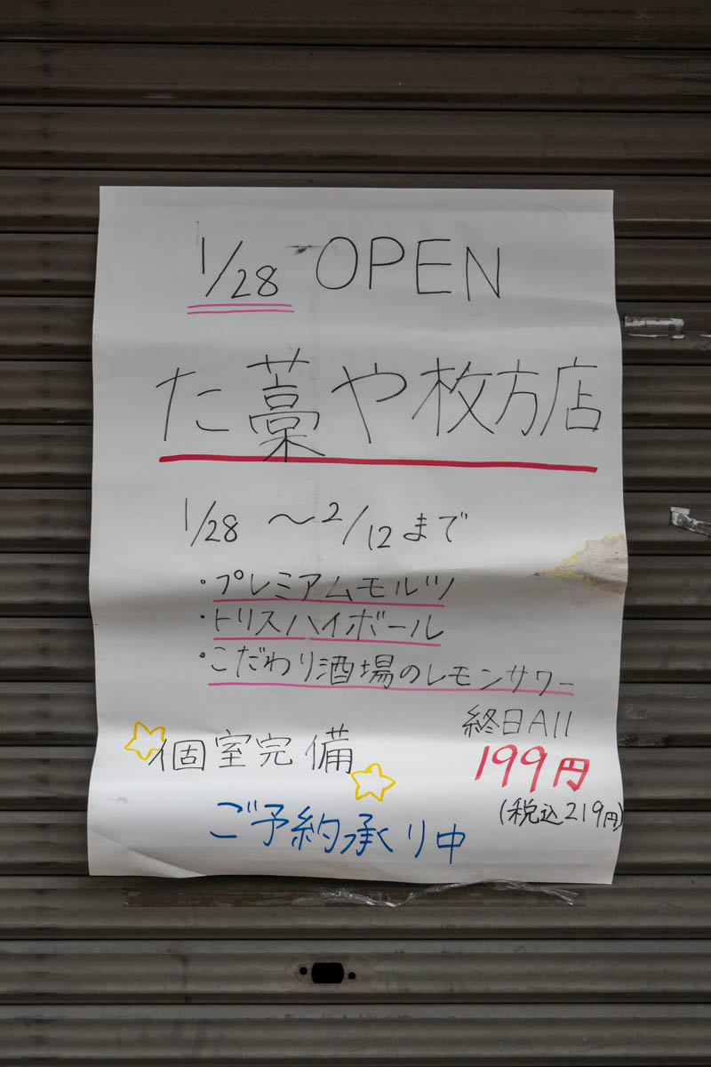 枚方市駅近くに「た藁や 枚方駅前店」という居酒屋ができるようです。