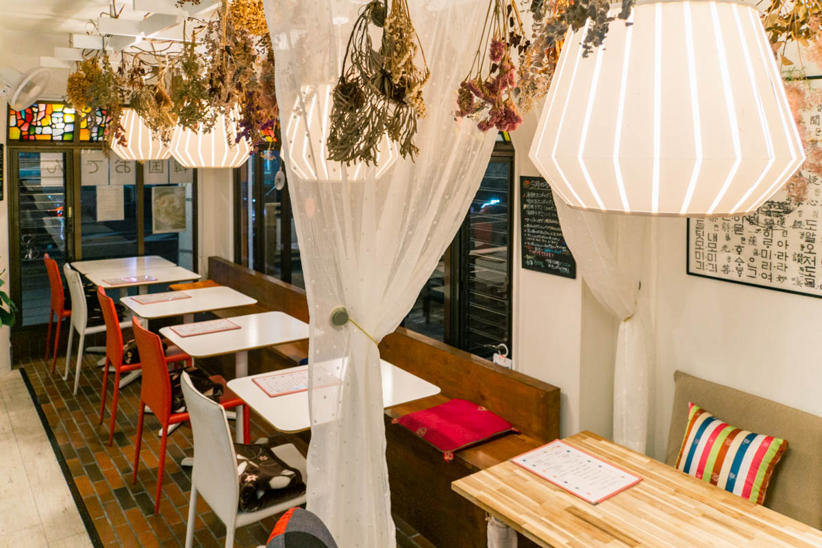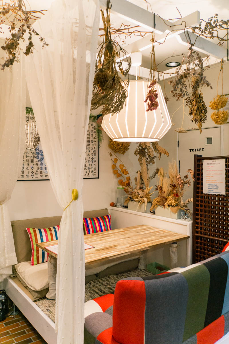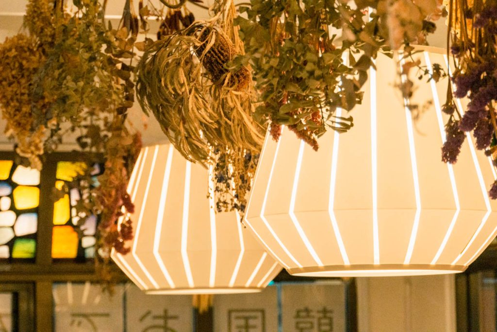 店内にはたくさんのドライフラワーがあり、かわいい照明も相まってとってもいい雰囲気。