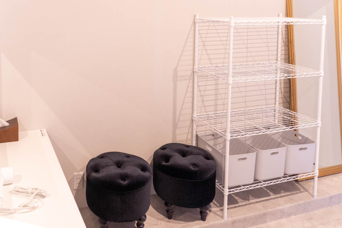 マシン以外にも鏡を見ながらストレッチなどができるスペースも。
