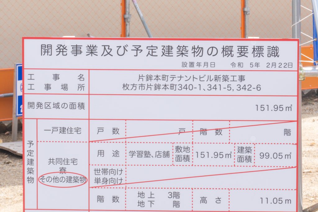 概要標識によると、3階建てのテナントビルができるようで、学習塾や店舗用のよう。