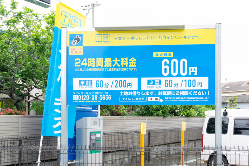 出口にコインパーキング「タイムパーキング 出口2丁目」ができています。