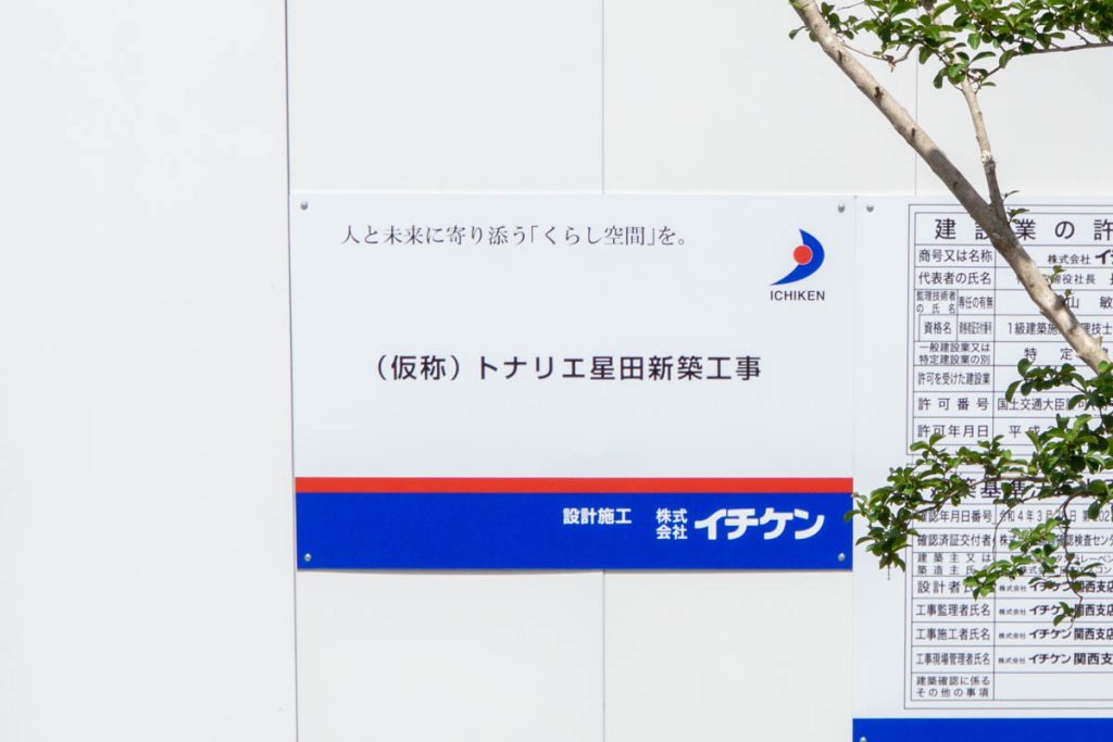 星田にできる商業施設「(仮称)tonarie星田」の工事が始まっています。