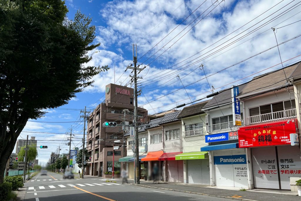 こっちに行くとファミリーマートなどがあり、その先には交差点「北楠葉町」が。