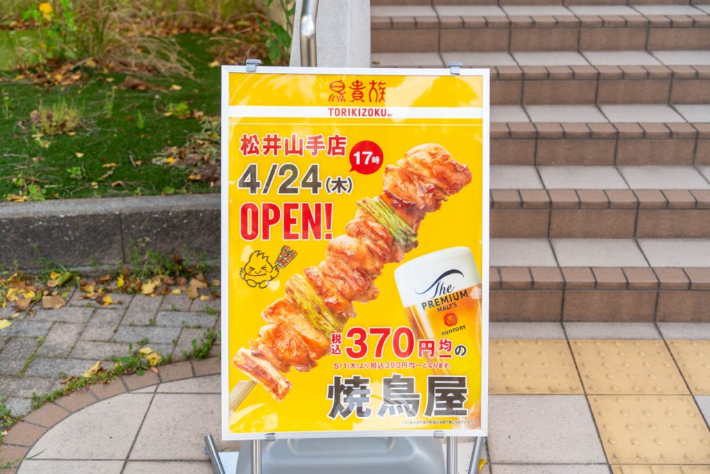 松井山手駅前に作っていた「鳥貴族 松井山手店」がオープンしています。