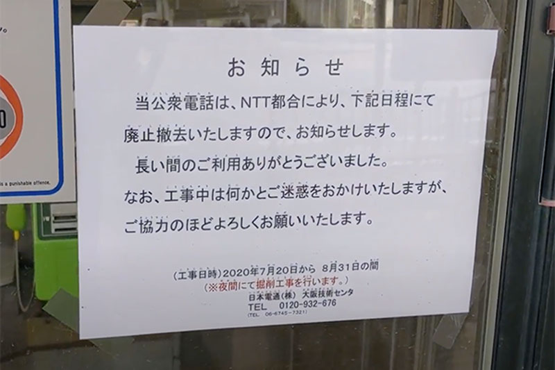 実際になんで撤去されることになったのかNTTに聞いてみると、携帯・スマートフォンの普及により利用頻度が下がったのと、設備の老朽化によるものがあるのだとか。