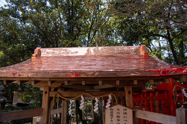 意賀美神社の手水舎の屋根がピカピカになっています。