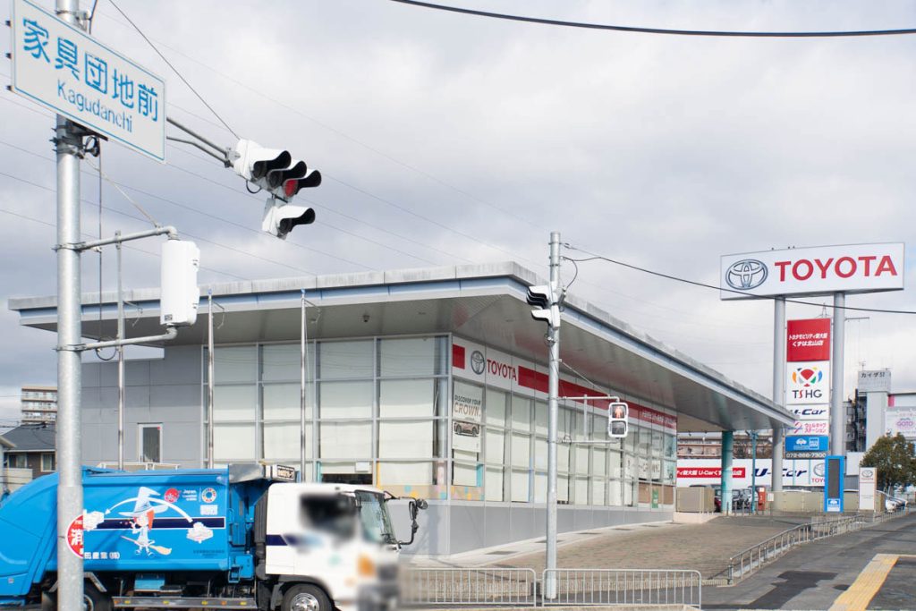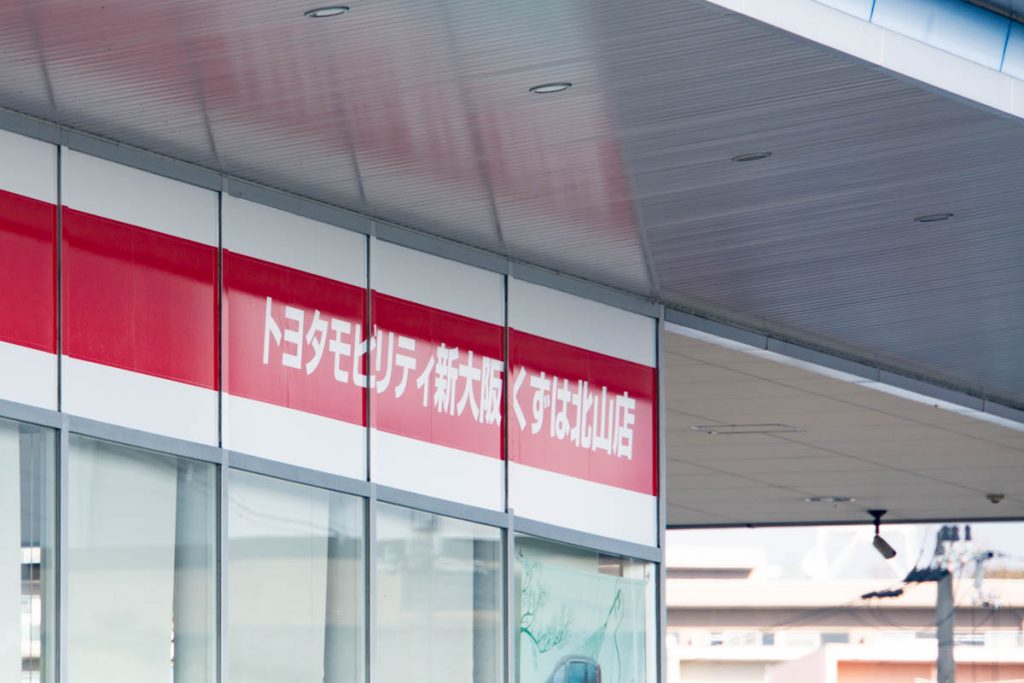 国道1号線沿い高野道の「ネッツトヨタ新大阪 くずは北山店」が『トヨタモビリティ新大阪 くずは北山店』になっています。