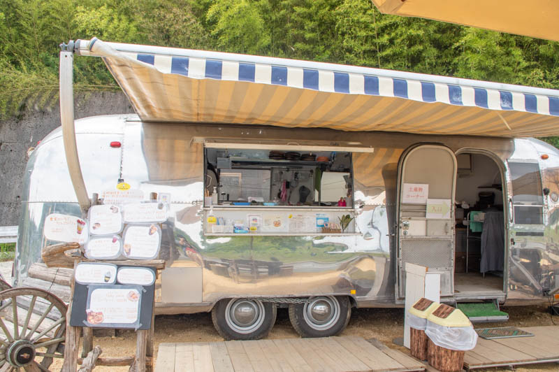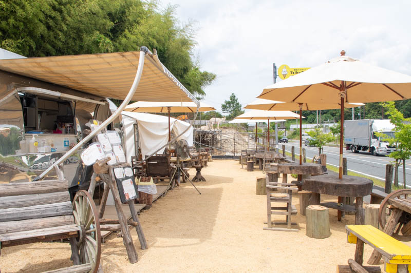 プレオープン時と比べて、座るスペースが増えていました。パラソル付き!椅子も個性的!