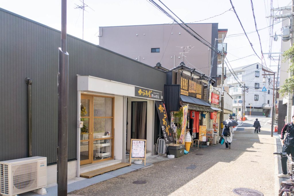 反対方向へいくと旧1号線にでます。すぐとなりは「からあげ 郡山健太」や「三代目たくちゃん」。