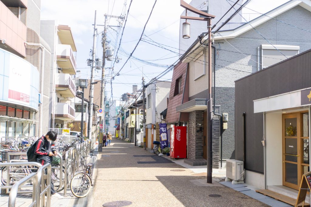 こっちに行くと枚方公園駅方面。向かい側にはサンパークが。