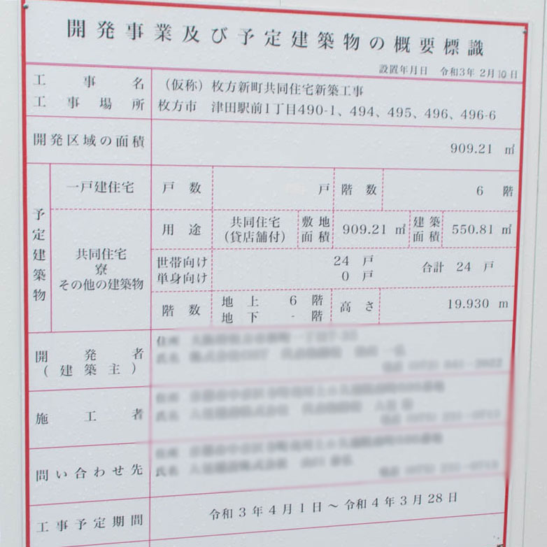 上記によると6階建て(高さ20mくらい)の建物ができる模様。