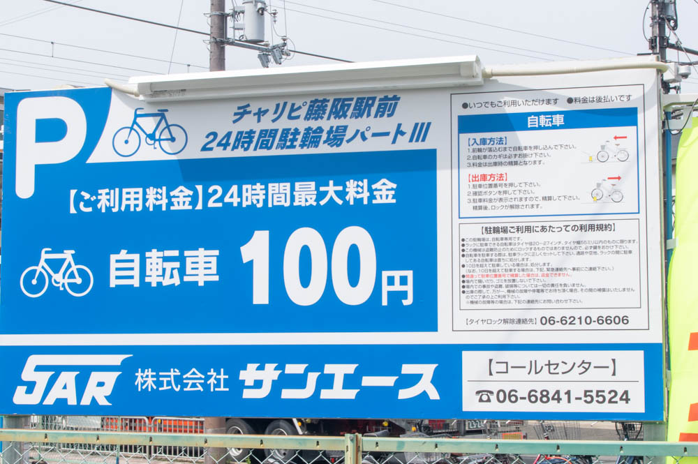 藤阪駅前に駐輪場「チャリピ 藤阪駅前24時間駐輪場パートⅢ」ができています。