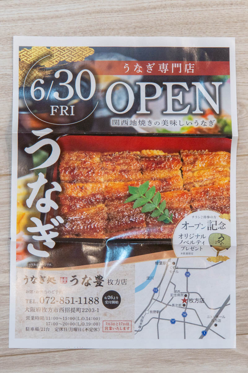 西招提町に作っていたうなぎ専門店「うな豊 枚方店」がオープンしています。
