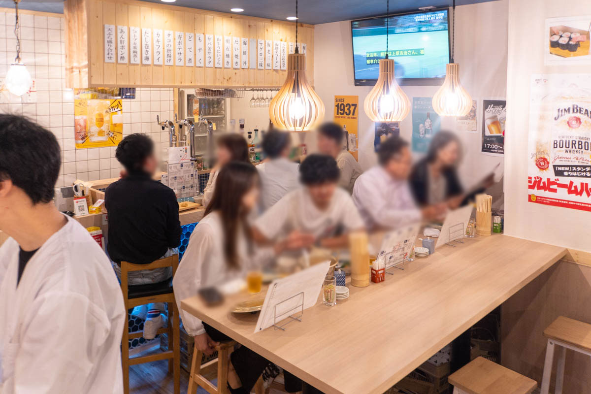 席はカウンター席が多めで、立ち飲みもあったり、個室もあるそうです。