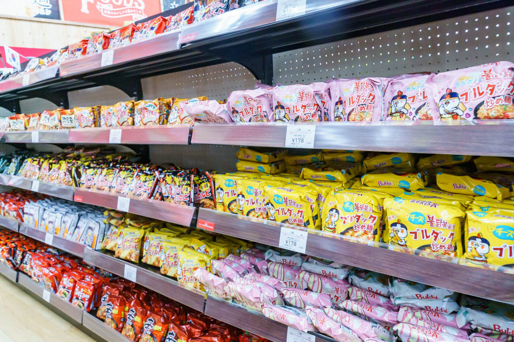 なかでも「韓国食品」のコーナーは地域最大級の品揃えなんだとか。
