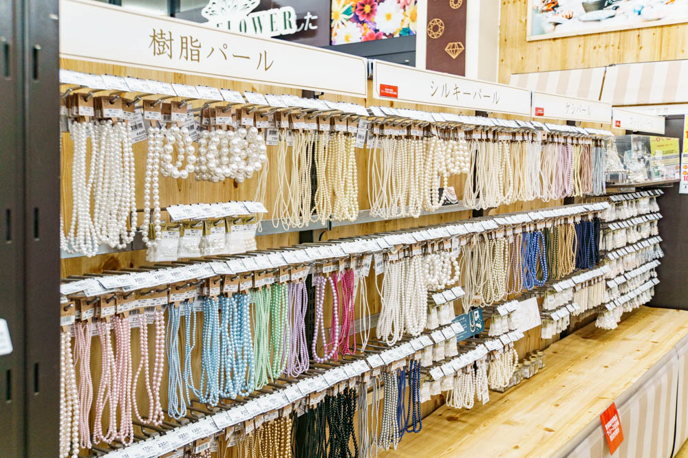 ビーズ、パール、ガラス・メタルパーツ、チャーム、レジンキットなどなど。手作りアクセサリーのパーツがかなり豊富に取り揃えられていました。
