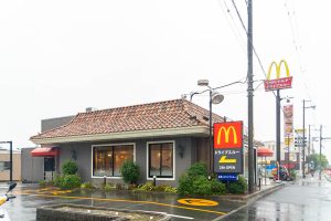 反対方向にはスギ薬局やかっぱ寿司、灯りの湯が。国道1号線方面です。