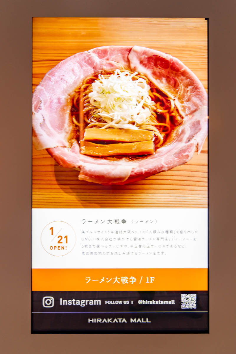 枚方モールに作っていた「ラーメン大戦争 枚方店」がオープンしています。