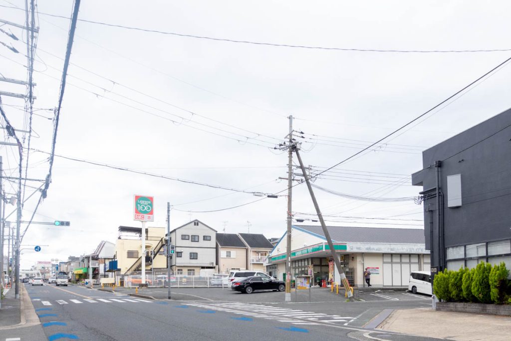 反対方向は東香里方面。近くには100円ローソンがある位置です。