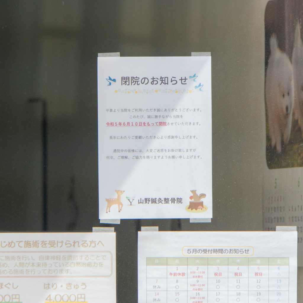養父丘の「山野鍼灸整骨院」が閉院するようです。