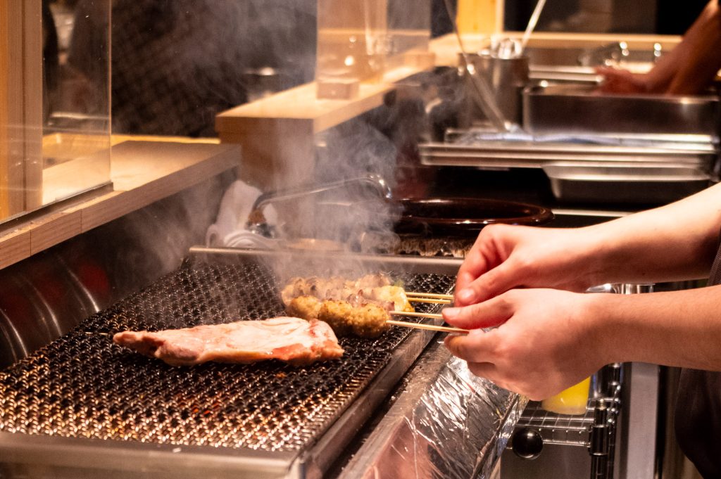 店の中心に「いま焼いてます」「いま揚げてます」「いまうまそうなことしてます」っていう場所があるので、空間全体にライブ感があるんです。