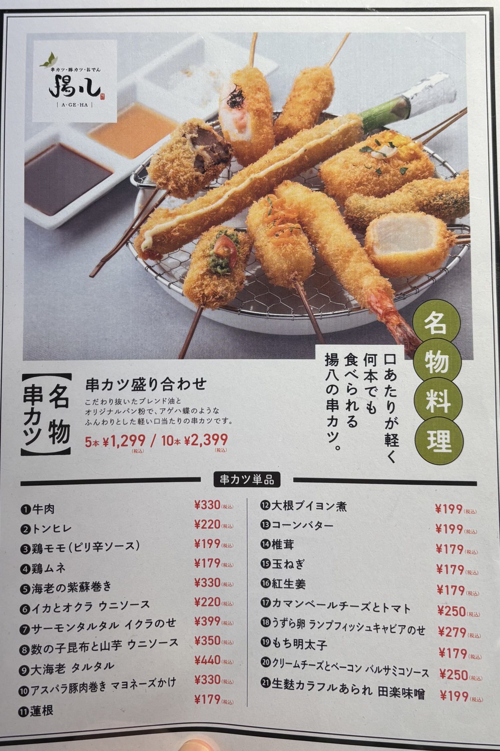 つまり、串カツ、焼鳥、海鮮、イタリアンの4ジャンルが同時に楽しめるわけです。