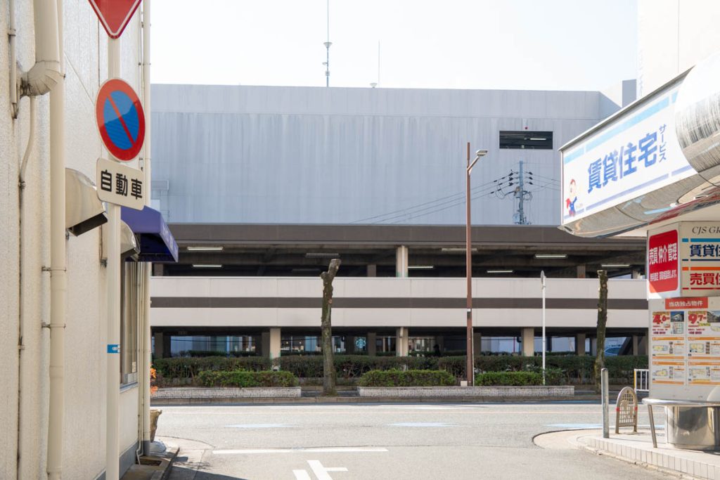 こっちに行き、最初の曲がり角を右へ行くとくずはモール周辺へ。