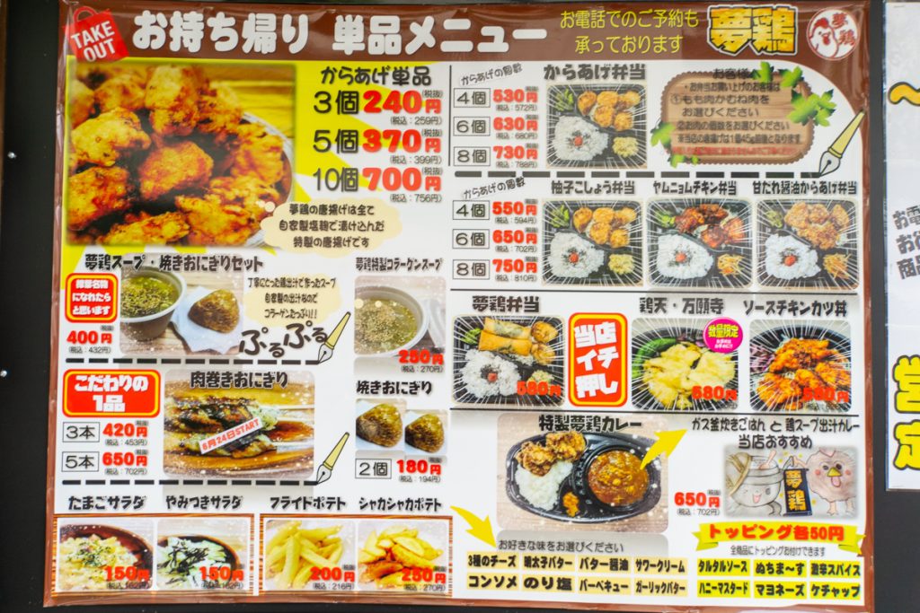 創作からあげ工房「夢鶏yumedori」は、唐揚げや鶏ガラカレー、手ごねドーナツやクリームソーダなどいろんなジャンルの食事が楽しめるお店。