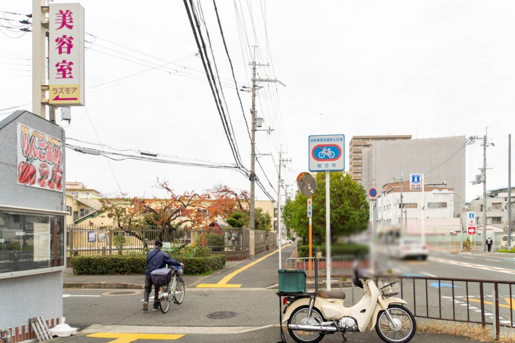 反対向かい側にはうらら幼稚園。樟葉駅方面です。