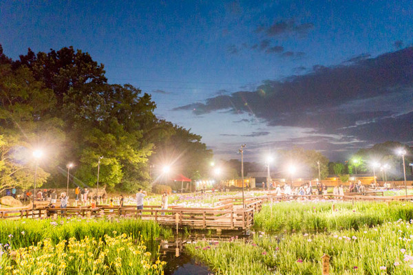 山田池公園の花しょうぶ園のライトアップがはじまってる2017