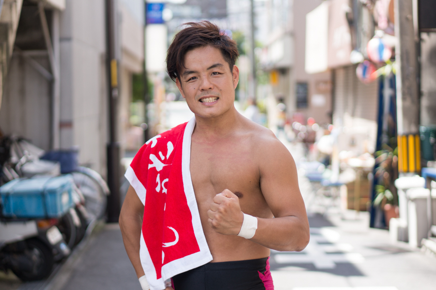 娯楽格闘技ISHIDOのプロレスラー田中祐樹さん。ご当地必殺技『ひらかたカッター』でおなじみ。