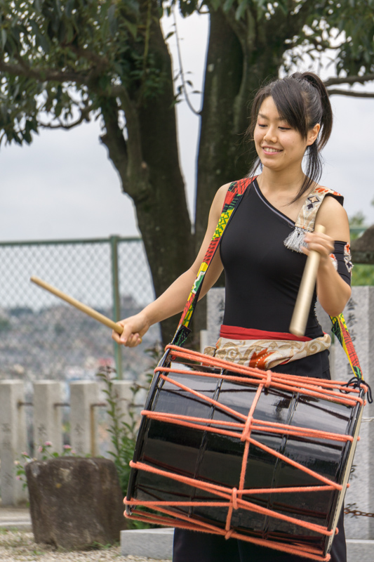 子どもの頃に桜丘の和太鼓の会「さくら」に所属していて、その流れで現在は、和楽器演奏集団「独楽」のメンバーとして活躍する太鼓のプロだそう。