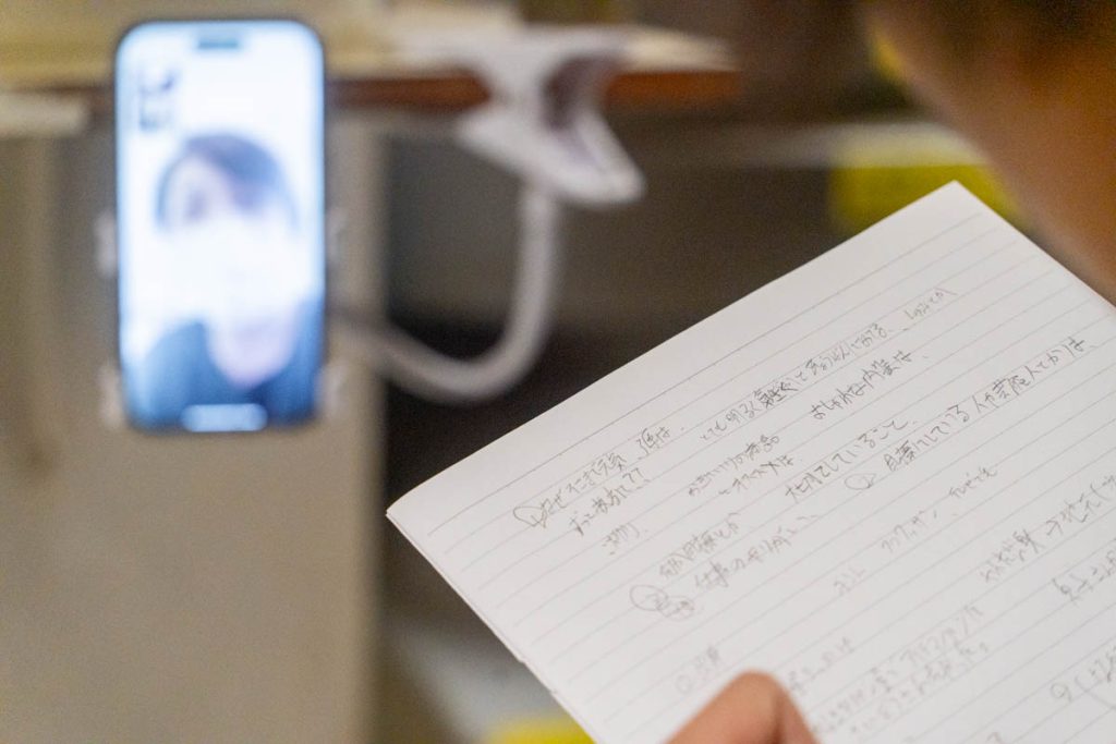 インタビュアーは、実習に来ていた摂南大学の学生たちです。