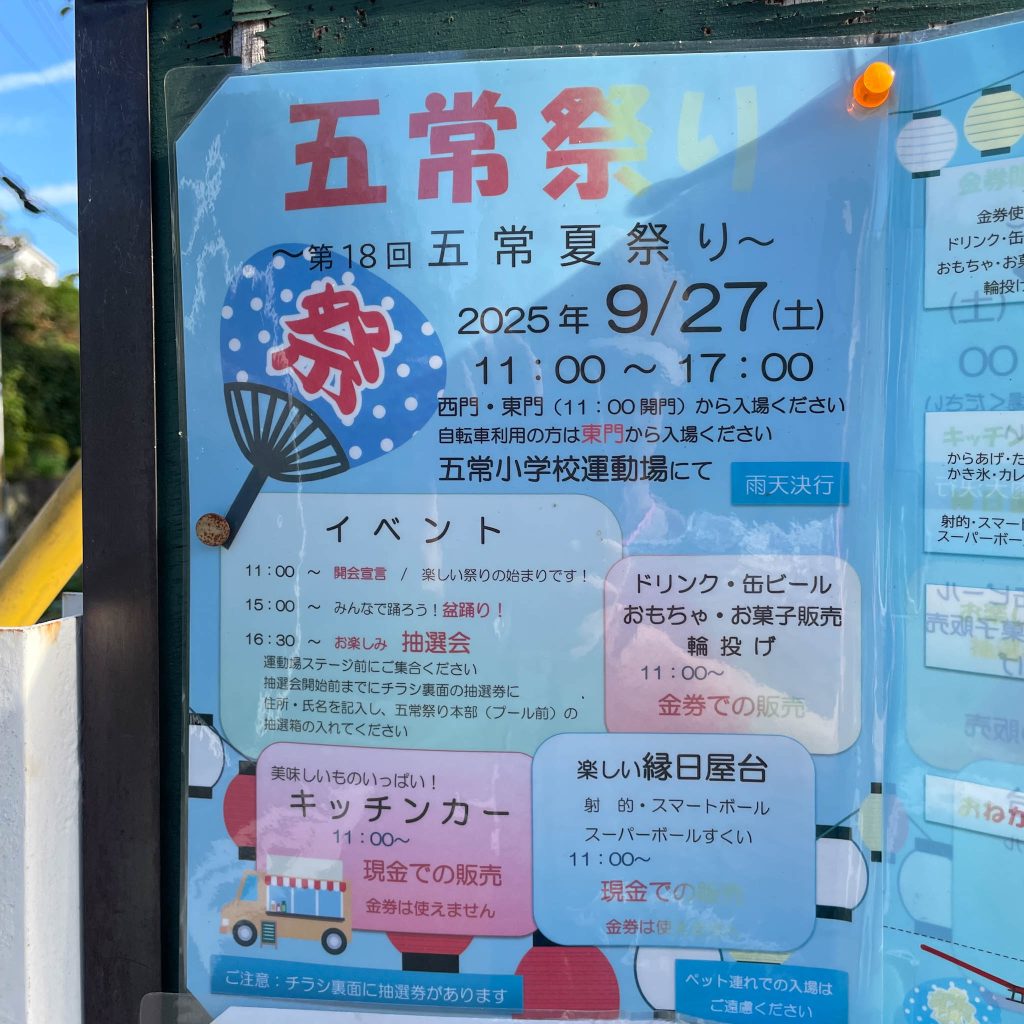 五常小学校で開催の「五常夏祭り」に行ってきました。