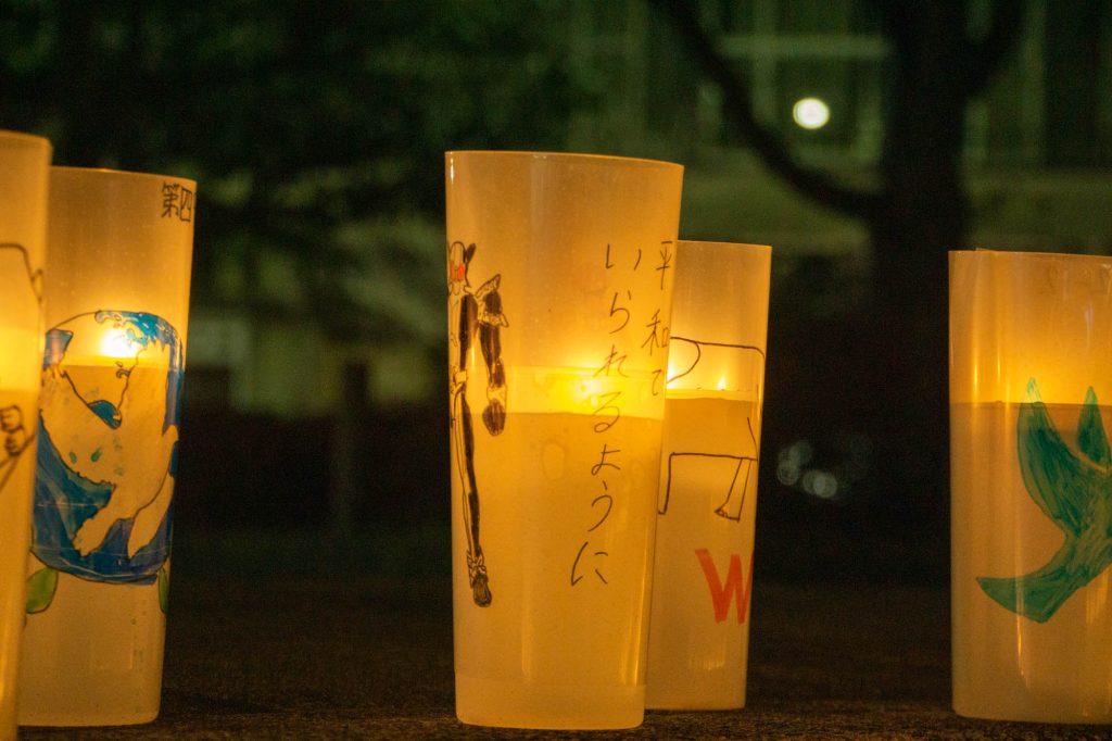 「平和の燈火(あかり)」は2011年から開催されていて今年で11回目となる、平和と新型コロナウイルス感染症収束への願いを込め、たくさんのキャンドルが並べられるイベント。市内外の大学生による実行委員会が企画・運営しています。