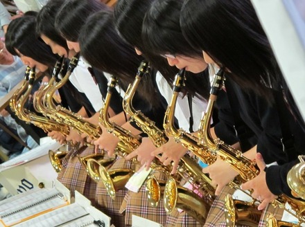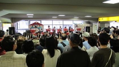 こちらは枚方市駅の改札前で演奏していた関西大学北陽高校ジャズバンド部。人だかりができてました。