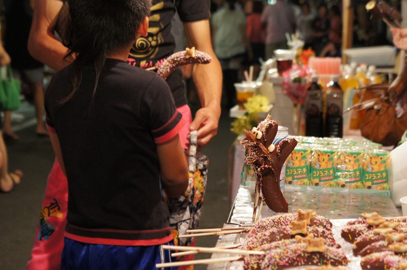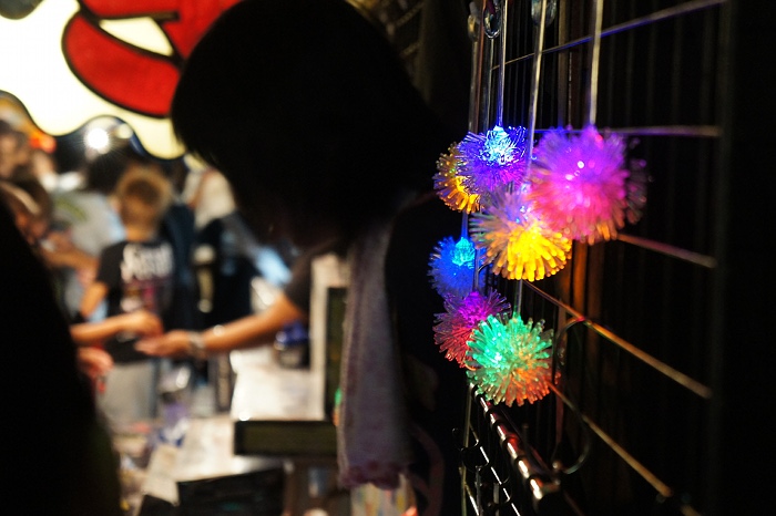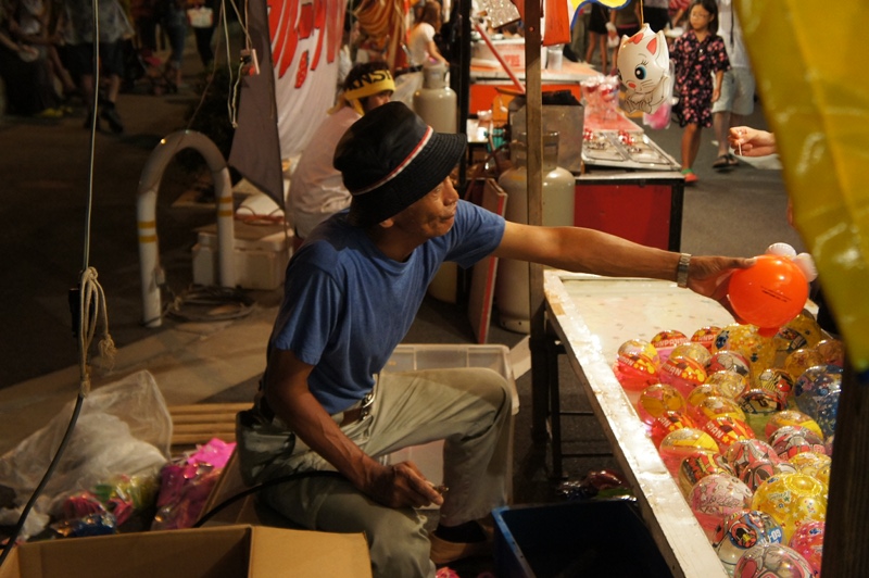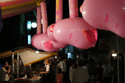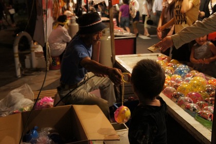 屋台【枚方フォト】 投稿日 2010年8月24日 22:00 著者 カズマ カテゴリー フォト 昨日(8/23)、牧野本町商店街で夏祭りをやってたみたいで、屋台がたくさん出てました。両側に屋台がギュウギュウ。道が狭いのが逆にいいですね。 チョコバナナ。コアラのマーチがのってます 変わり種。グェッ、グェッ。 「なんで俺たちを買わないんだよっ!グェッグェッ!」 スヌーピー逆さ吊り。「頭に血がのぼるっス。正直しんどいっス。」 光るボールすくい 綺麗です。 こういうおっちゃん好き。 「ほらよ、ボウズ。」(目線はおカネ) いい雰囲気のお祭りでした。 シェア ツイート LINE フォト 牧野駅 祭
