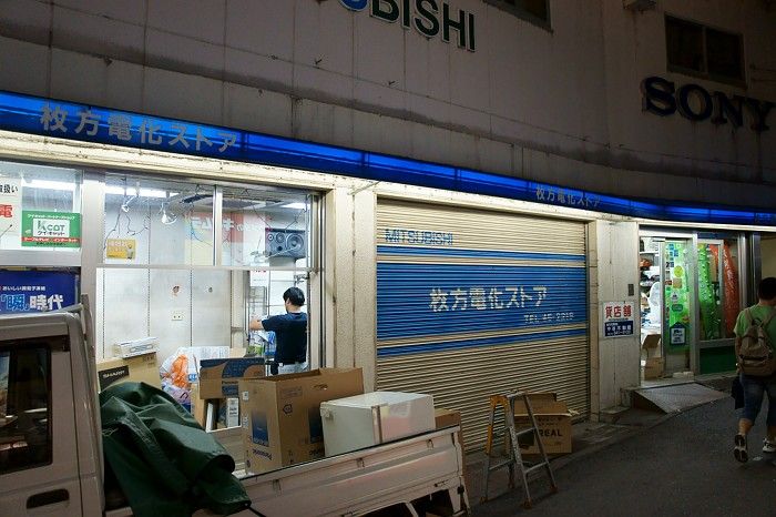 枚方市駅を出てすぐの電気屋さん「枚方電化ストア」が閉店してる 投稿日 2010年9月2日 19:14 著者 カズマ カテゴリー フォト 枚方市駅からビオルネに向かう細い道にある「枚方電化ストア」が閉店してました。「貸店舗」の文字が。 写真を撮ったのは枚方まつりの日なんですが、ちょうど撤去作業をしてました。 上のフロアも特に何も入ってないみたいです。 ここで何か買ったことあるわけじゃないんですが、なんか寂しいですね。 ついでに、この向かいにあったTSUTAYAもなくなってます。変化が速いですねー。 ※追記:なくなったのは1階がカメラのキタムラになったのみで、上のレンタルのフロアはそのまま残ってます。紛らわしいこと言ってすいませんでした シェア ツイート LINE フォト 枚方市駅 閉店